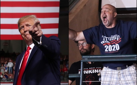 Trump estaba en un acto ayer por la noche cuando vio a Frank Dawson sacudiendo el puño entre manifestantes contra el presidente que eran expulsados del lugar. Dawson llevaba una camisa "Trump 2020", pero el presidente pensó que era uno de sus detractores.