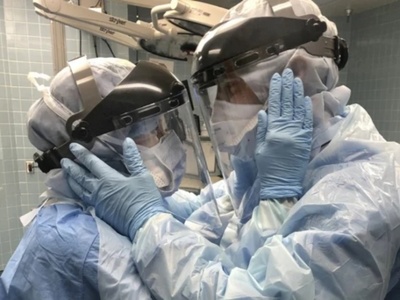 Así, a través de sus caretas protectoras y con una sola mirada, ambos se dieron aliento para continuar la lucha por seguir salvando vidas.