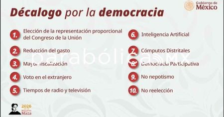 La presidenta Claudia Sheinbaum presentó este 4 de marzo el “Decálogo por la Democracia”, una iniciativa de reforma electoral que contempla diez puntos clave para modificar el sistema político-electoral del país.