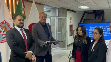 La Secretaría de Educación y Deporte (SEyD), a través de su titular, Francisco Hugo Gutiérrez Dávila, realizó la entrega del reconocimiento Taiichi Ohno a cinco becarios, además de la entrega de la Katana de Mando Universitaria a becarios vinculados con la empresa Safran. Lo anterior se llevó a cabo durante la ceremonia Taiichi Ohno, un acto simbólico que representa el honor, la disciplina y el liderazgo dentro del ámbito académico y de mejora continua.