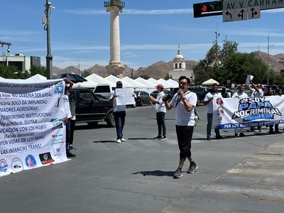 Un grupo de manifestantes, en su mayoría hombres y padres de familia, se congregó a las afueras del Palacio de Gobierno, en el primer cuadro de la ciudad, para exigir mayor equidad en los procesos del Poder Judicial del Estado